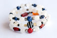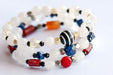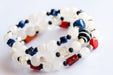 Each of the three bracelets in this set is a unique tribute to one of Mondrian’s defining hues—blue, yellow, and red—framed in crisp white and grounded in black. The entire set is built on a base of smooth 8mm White Jade rounds, echoing the artist’s use of white space to create harmony and tension.