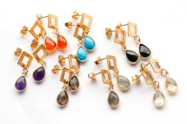 Golden Prism – Faceted Gemstone Drop Earrings
