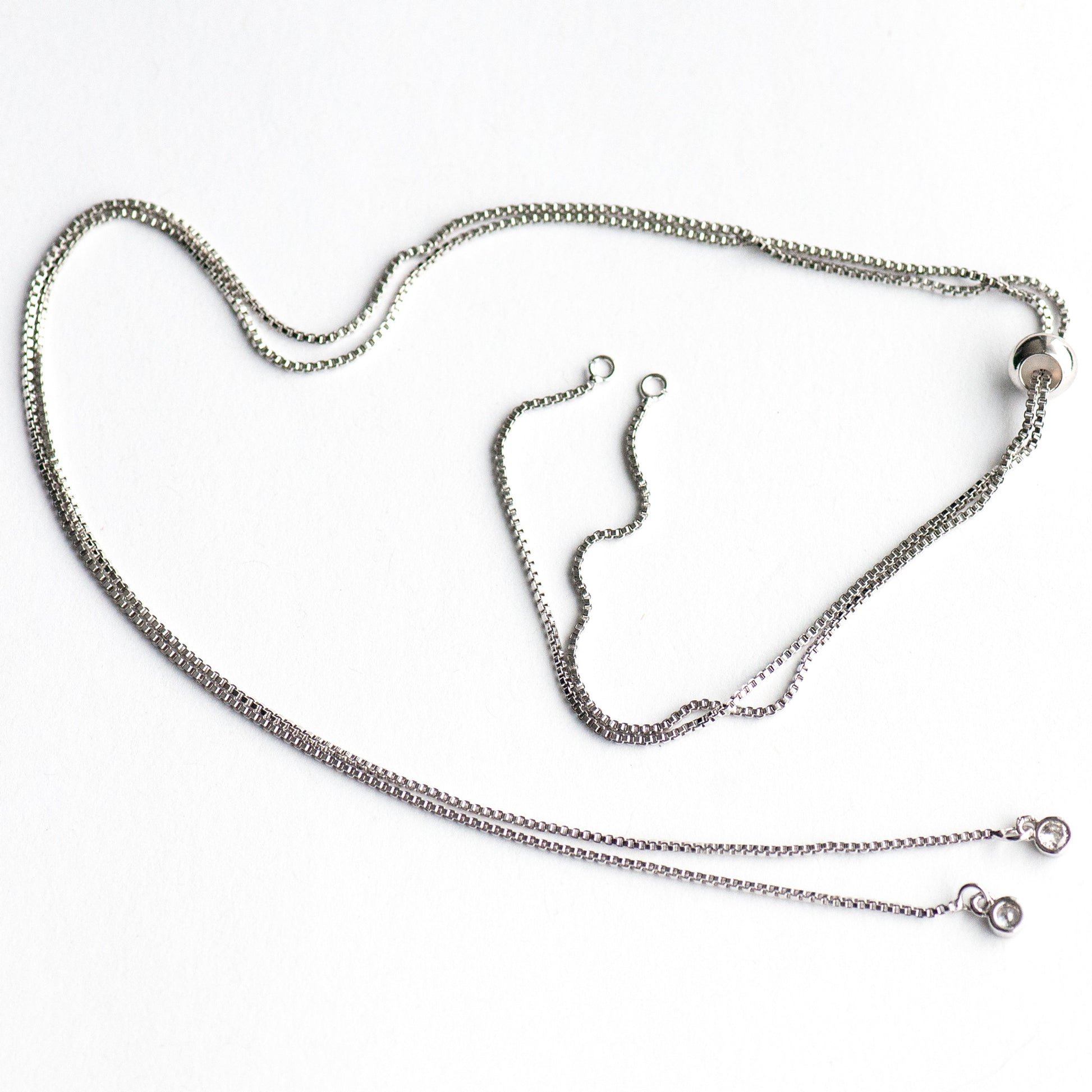 Versatile and elegant, our Adjustable Box Chain offers the perfect balance of style and convenience. Featuring a smooth sliding mechanism, this chain allows you to customize the length effortlessly, making it an ideal choice for layering or adjusting to different necklines. The crystal-accented ends add a subtle touch of sparkle, while the clasp-free design makes it easy to slip over your head—perfect for those who prefer a hassle-free fit. This chain is a timeless addition to any pendant, available in silver and gold finishes.