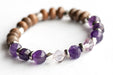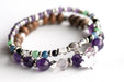 The back half of the bracelet features 4mm Amethyst rounds, complemented by silver-plated brass spacer beads.