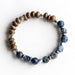 The back half of the bracelet features 4mm Sodalite rounds, accented with silver-plated brass spacer beads.